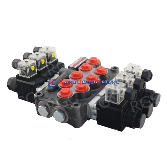 Моноблочные гидрораспределители серии MB-3. Монолитный корпус с предохранительным и обратным клапанами, от 1 до 6 рабочих секций. Управление: ручное, тросовое, электрическое и прочее. Расход - 45 л/мин, рабочее давление - 250 бар.